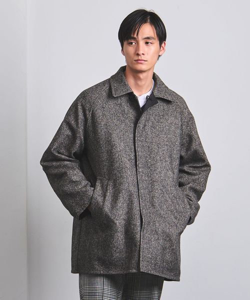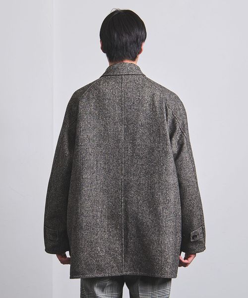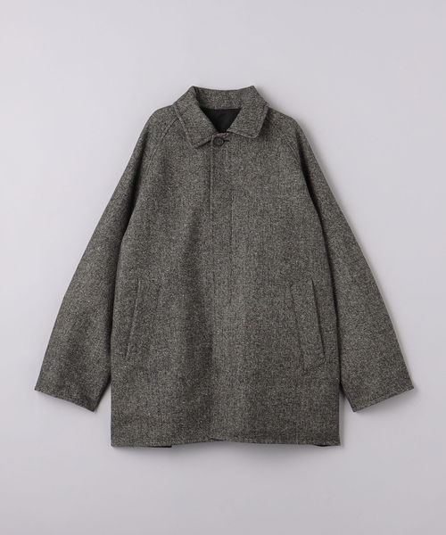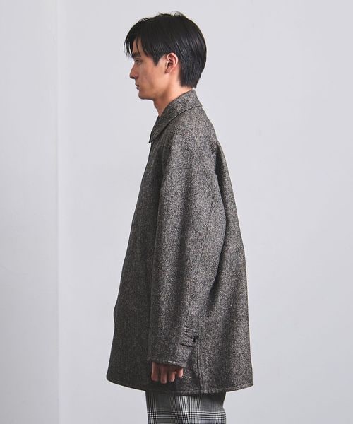 ナイロン面はカーコート風ブルゾンでややカジュアルな印象、ツイード面はショートバルカラーでトラディッショナルな印象と、それぞれ全く異なる表情になるよう製作しました。