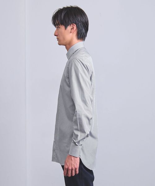 「ALBINI」社製の細番手の糸で織った繊細でスッキリとした表情のストライプ柄生地を使用。