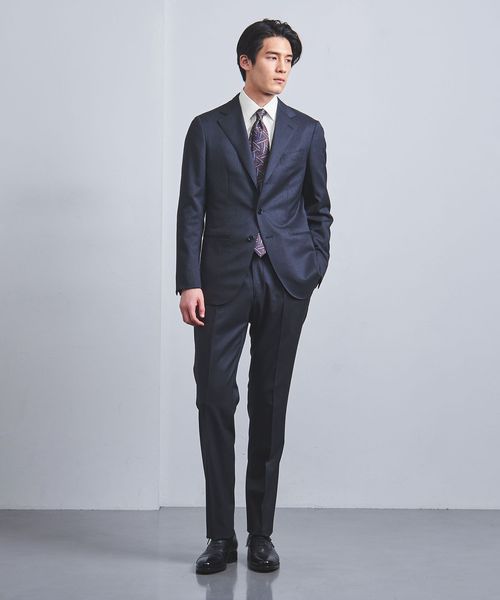 ラペル幅が広めなスーツやジャケットと合わせることでエレガントな印象がさらに加わります。