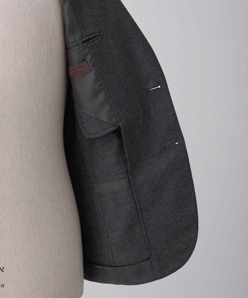 柔らかくあたたかみのある雰囲気が漂うソフトフランネル素材を使用した2ボタンテーラードジャケット。
