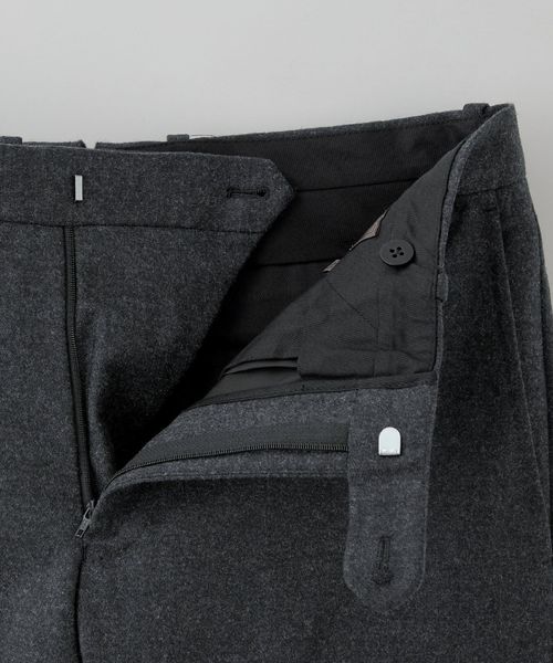 柔らかくあたたかみのある雰囲気が漂うソフトフランネル素材を使用したスラックス。