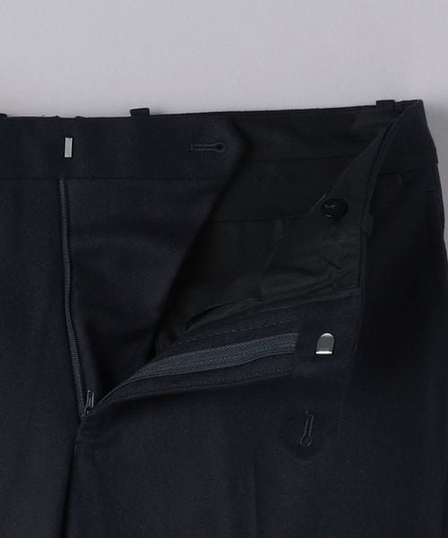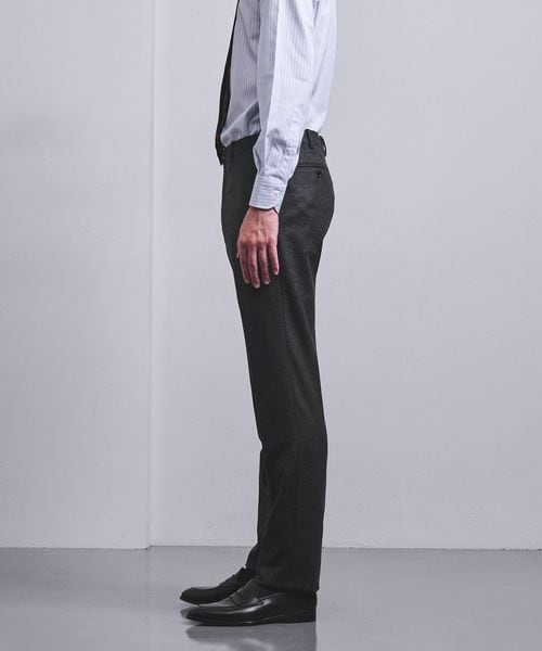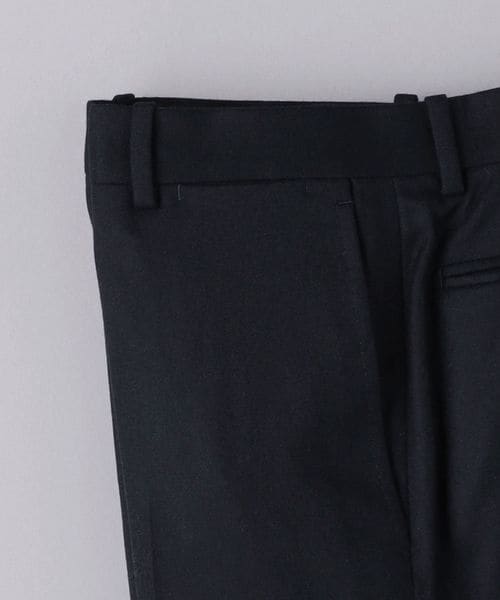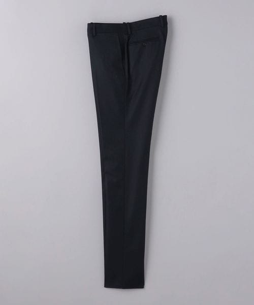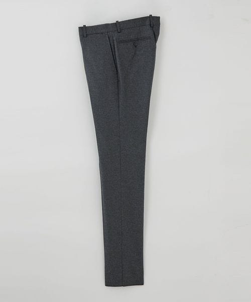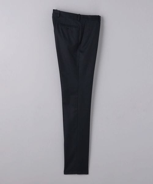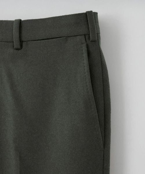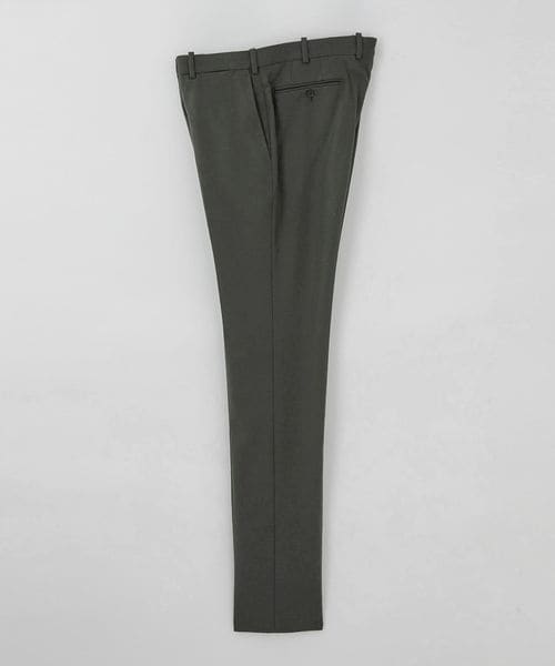 ノープリーツの腰回りに膝下はテーパードシルエットで、すっきりとした印象です。