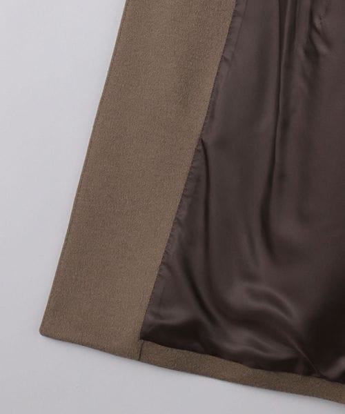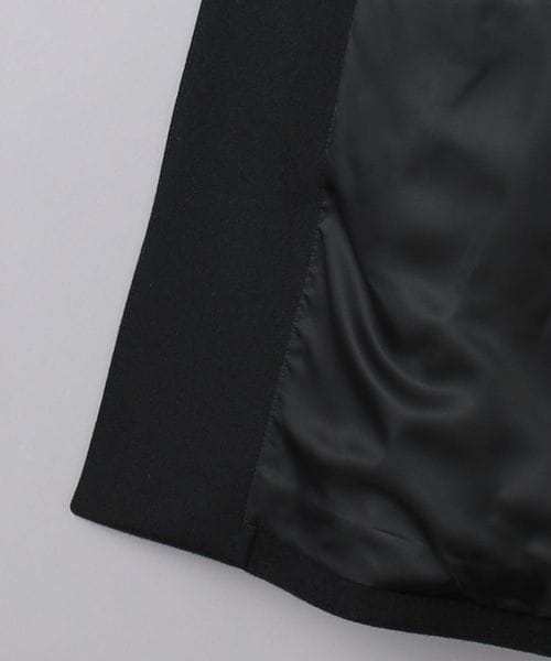 少し広めのラペル幅に丸みのあるショルダーライン、ウエスト部の自然なシェイプからほどよい長さで自然に広がるAラインシルエットが特徴です。