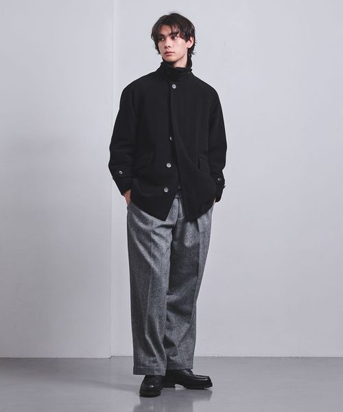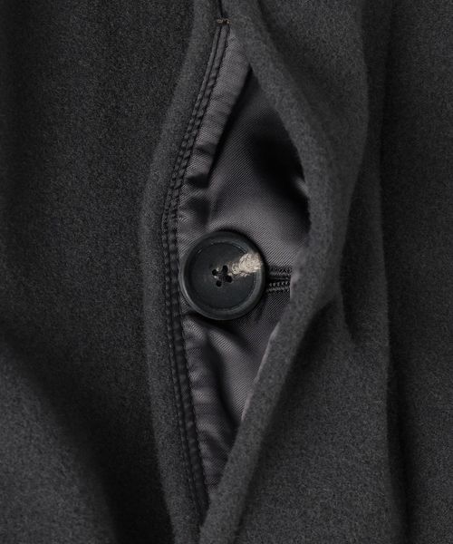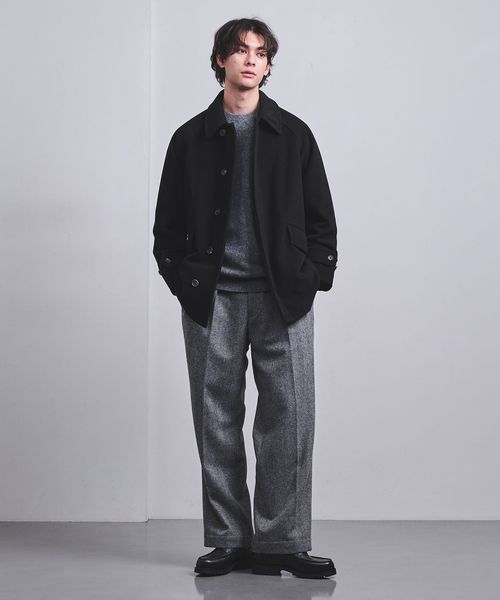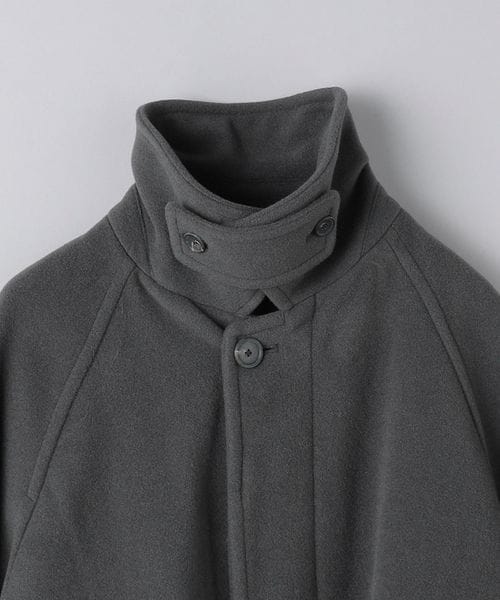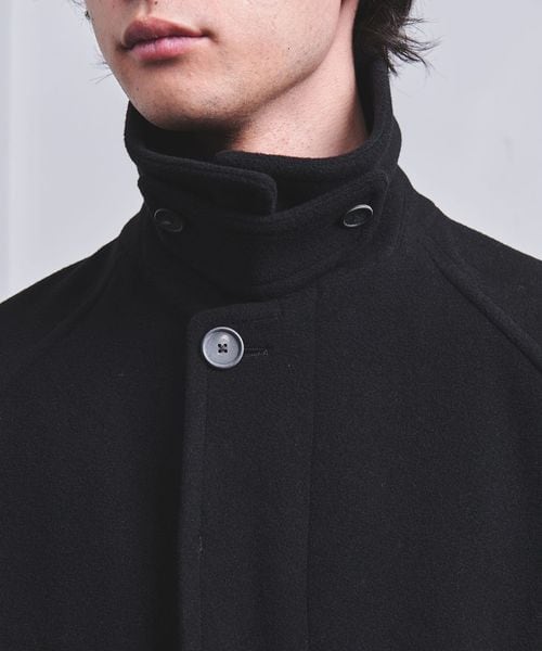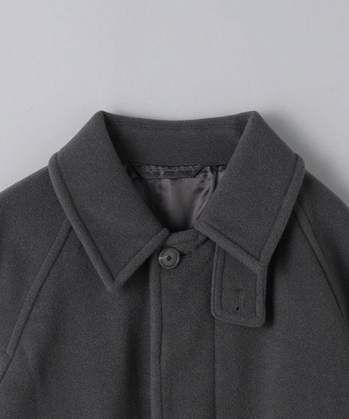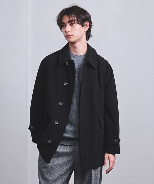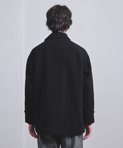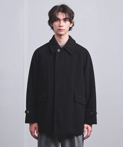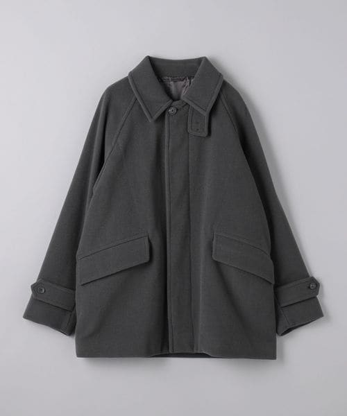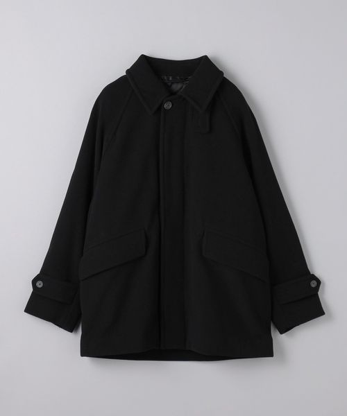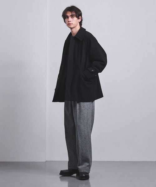 長い着丈のバルマカーンコート(品番:11251398748)をベースにヒップ丈の軽快に仕上げたハーフコートです。