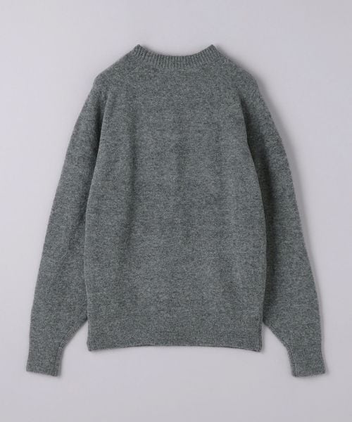 クラシックな雰囲気のサドルショルダーデザインのクルーネックニット。