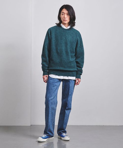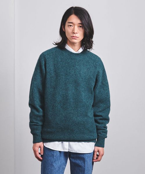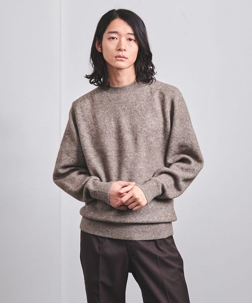 首元のやや太めのリブのバランスは1枚着でも様になるデザインアクセントです。