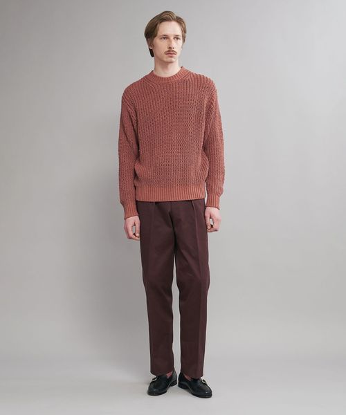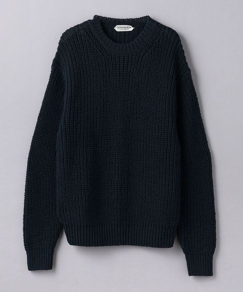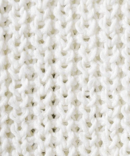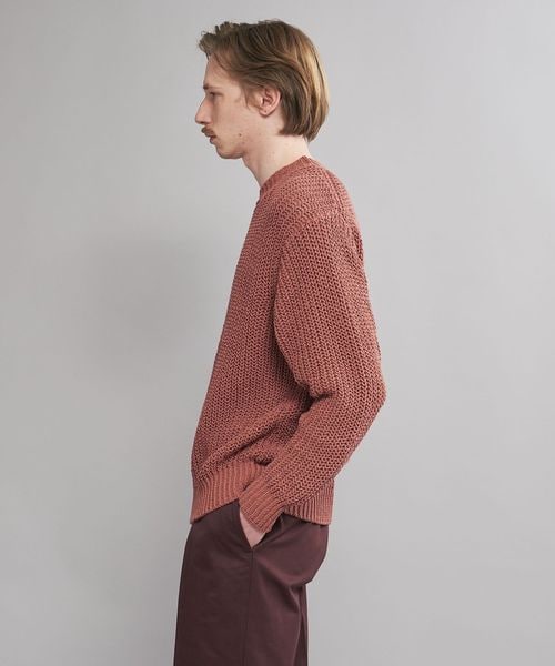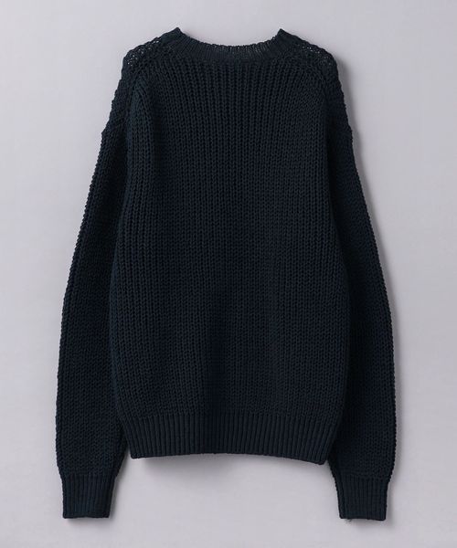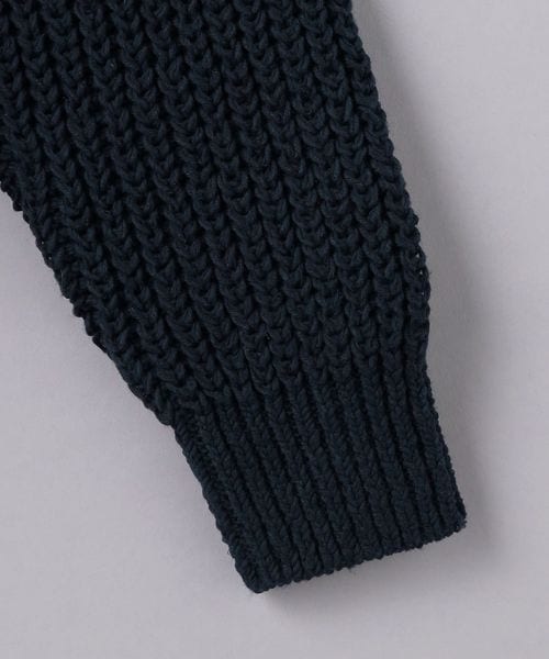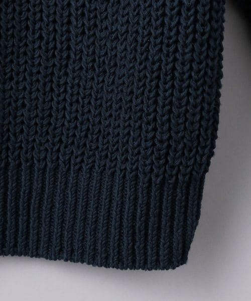 クルーネック部分は3Gの畦編みで形状維持のためにストレッチ糸を多く使用しています。