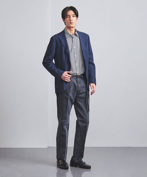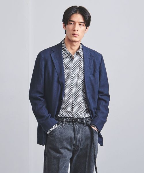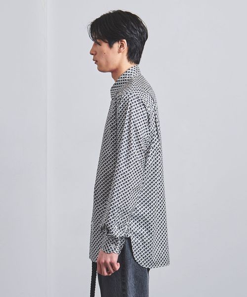 ジオメトリック柄がコーディネートのさりげないアクセントになるプリントシャツ。