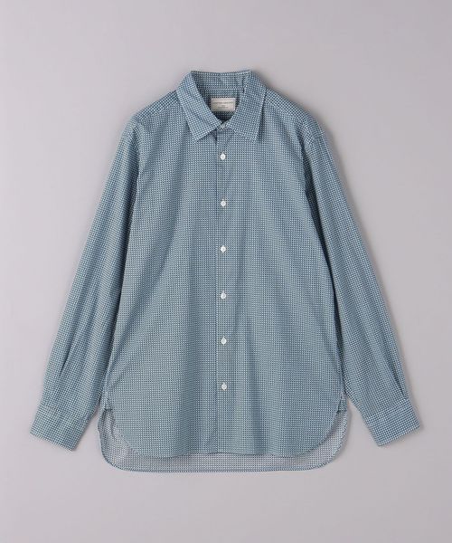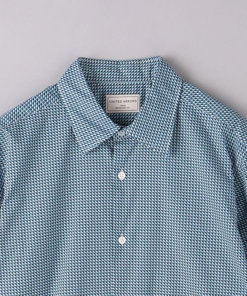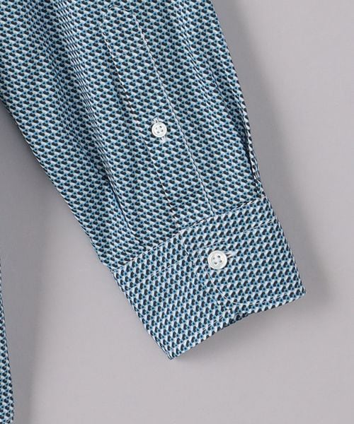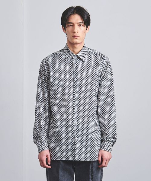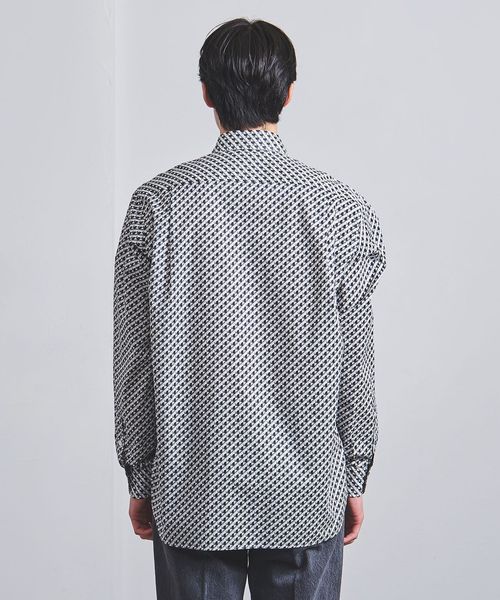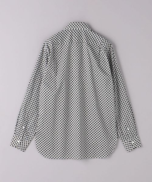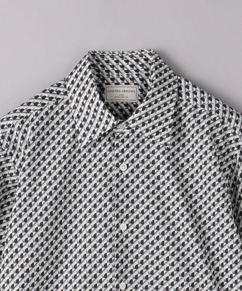 上品な印象の細かなジオメトリック柄プリントシャツ