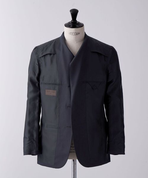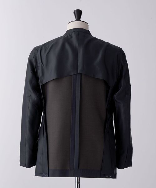 ロープドショルダーとやや広めの肩巾による直線的・構築的なショルダーラインが特徴。