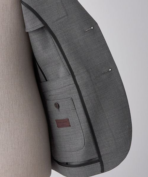 極力芯地を省き、軽い仕立てながらスーツのようにきちんと感を演出する普遍的なデザインバランスと、コンパクトですっきりとしたシルエット、ナチュラルなショルダーラインが特徴です。