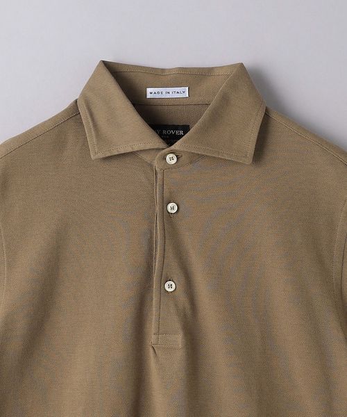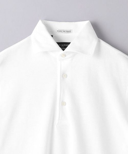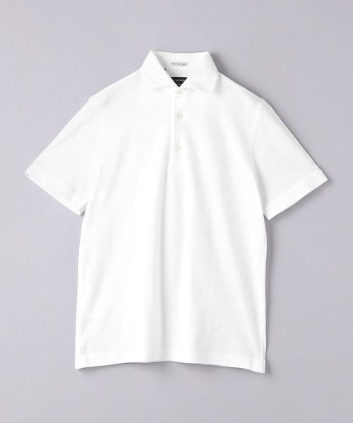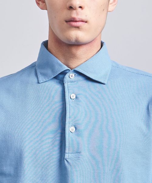 ビジネスシーンで着用されることが多い台襟付きワイドカラーのポロシャツを、カジュアルな装いにもマッチするよう別注。