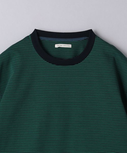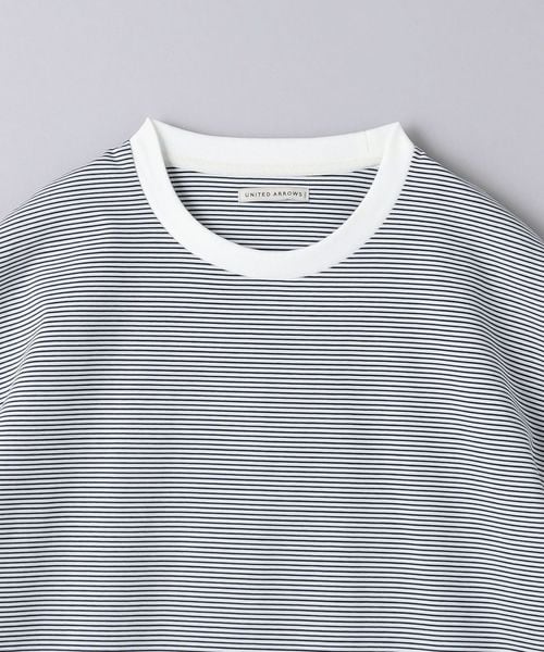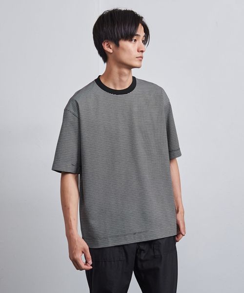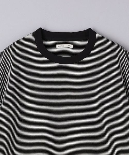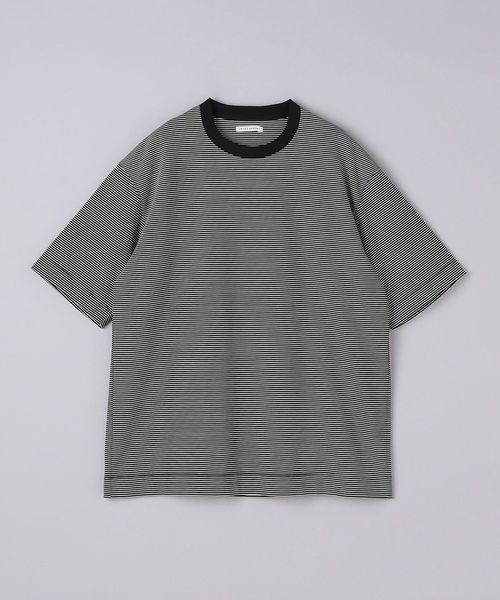 使い勝手の良い、細いピッチのボーダー柄クルーネックTシャツ。