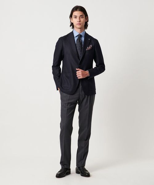 また、テキスタイルへの深い造詣を持ち、厳選した素材使いも特徴の一つです。クラシックをベースにしたスーツ、ジャケットのコレクションでカラーパレットを実現したような豊富な色柄、パターンのバリエーションを揃えたコレクションは稀有な存在です。糸からセレクトし作り上げたエクスクルーシブな生地にもブランドの拘りが伺えます。