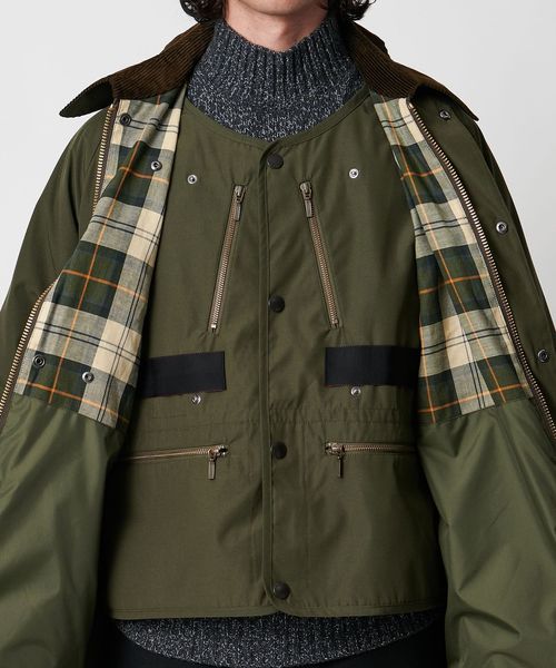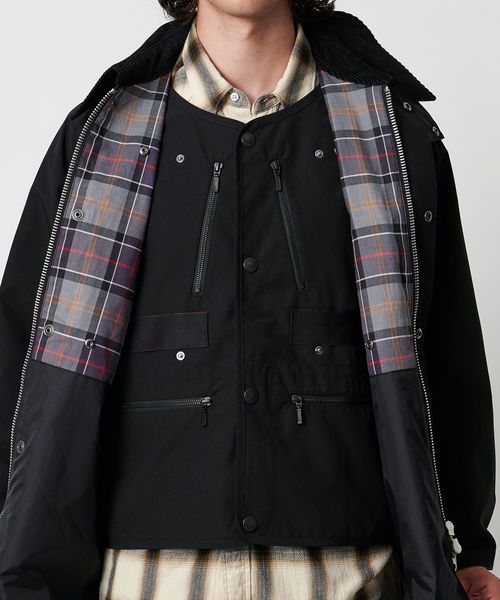 <BARBOUR>の定番モデル「ビデイル」に、<BRIEFING>ならではの多機能ポケットを備えたインナーベストを追加したアップデートモデル。