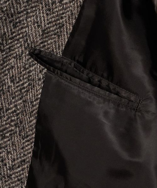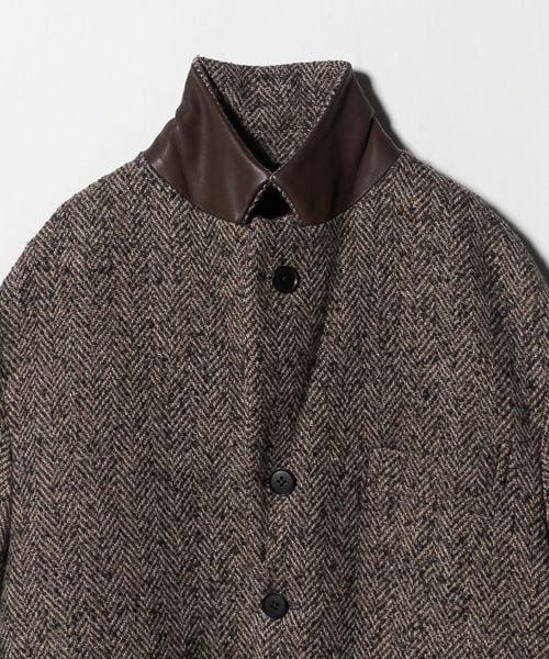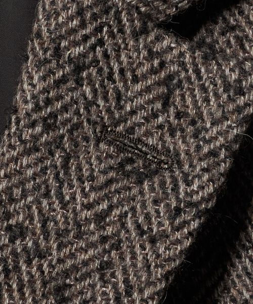 表地;毛72% アルパカ21% リネン7% 身頃裏地;キュプラ100% 袖裏地;キュプラ100% 袋布;綿100% 皮革部分;羊革