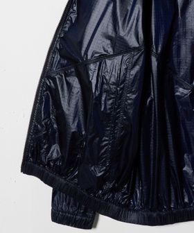 適度な光沢とシボ感のあるナイロン素材を使用したウインドブレーカージャケット。