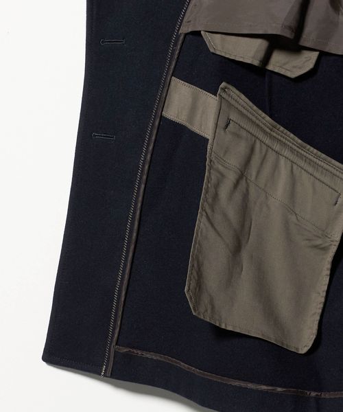 表地;ウール90% ナイロン10% 上衿部分; 別布;コットン100% テープ部分;コットン100% 裏地;ポリエステル100%
