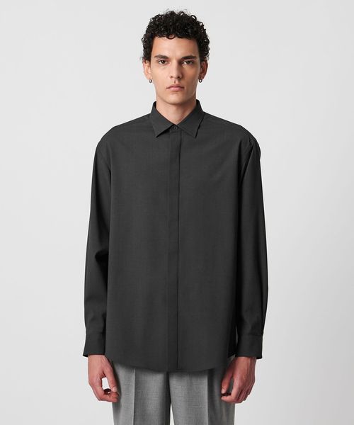 比翼仕立てで、シャープかつクリーンな印象のレギュラーカラーシャツ。