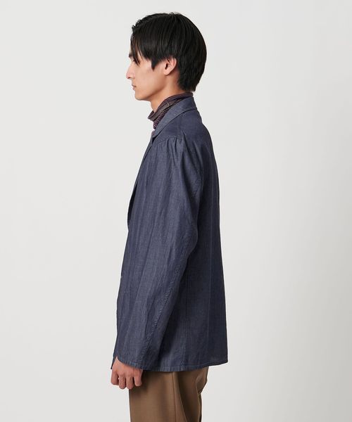 ライトオンスのデニムツイル地を使用したシャツジャケット。
