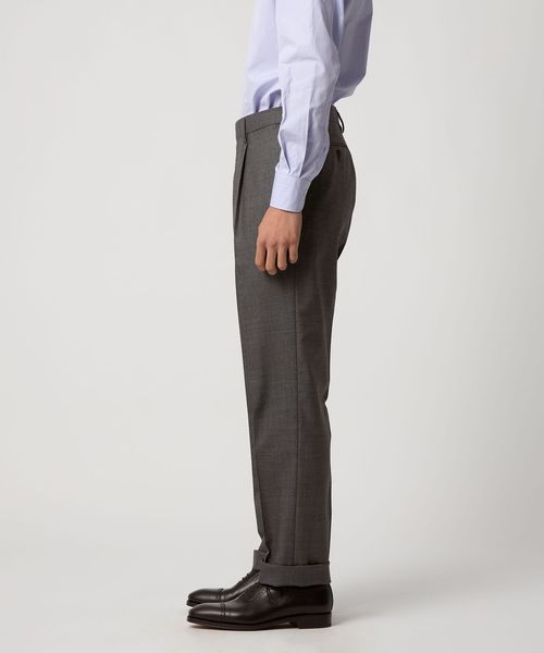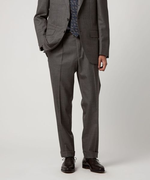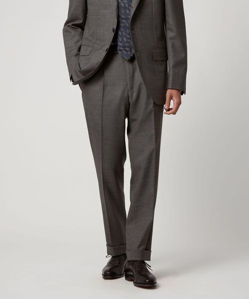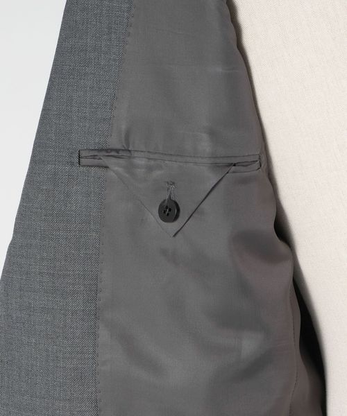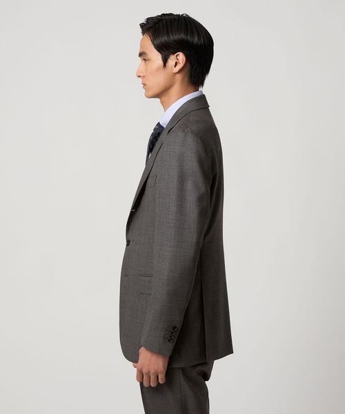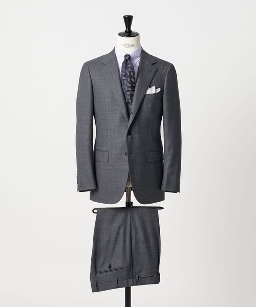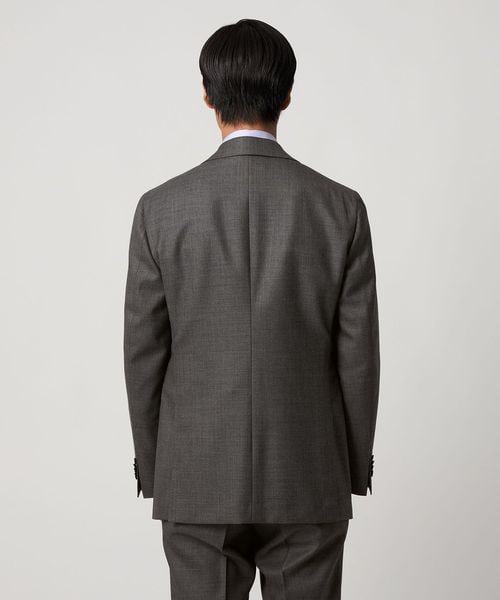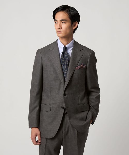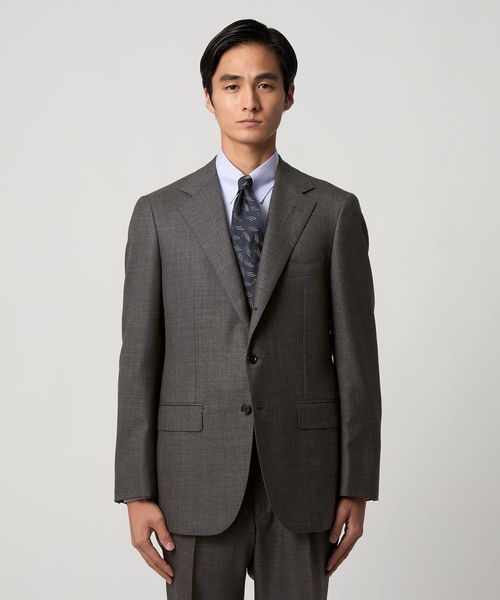 国内屈指の技術を誇る縫製工場で仕立てており、直線的なショルダーラインと男らしい胸まわりが特徴で、風格のあるスーツスタイルを演出いたします。