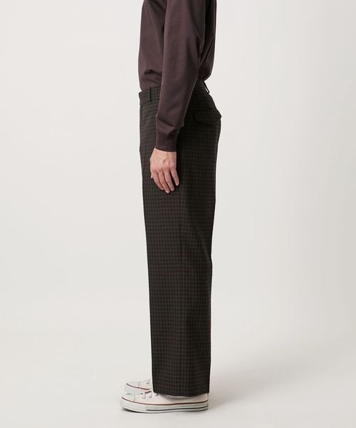モダンチェック ノープリーツ ワイドストレート パンツ