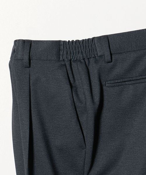 デニムプリント スリムテーパード サイドシャーリング 1プリーツ スラックス COMFORT EASY―MODEL ヨコストレッチ