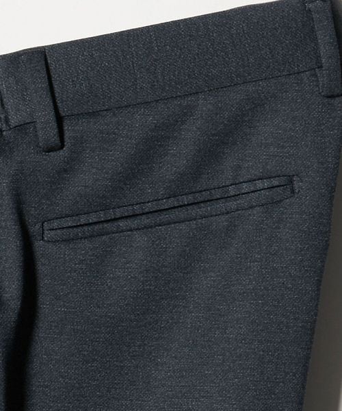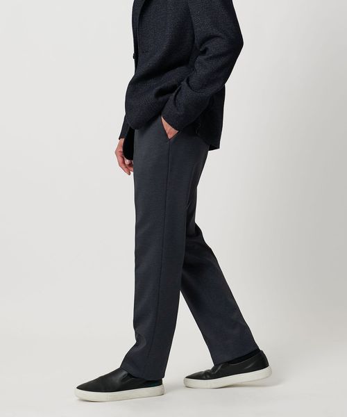 スラックス専門の工場で縫製し、すっきりとスリムなラインながら、脚を上げるときの運動量を加味した設計ゆえ、動きやすく快適なはき心地を実現しています。