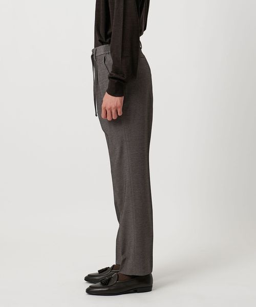 ジャージ素材でありながら、ドレスパンツのような洗練された佇まいが魅力の一本。