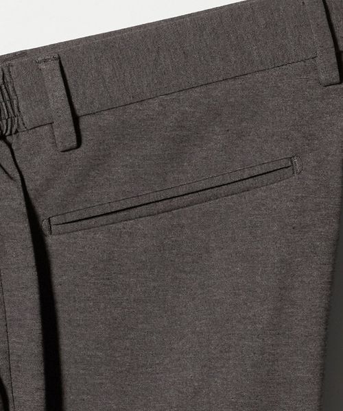 スラックス専門の工場で縫製し、すっきりとスリムなラインながら、脚を上げるときの運動量を加味した設計ゆえ、動きやすく快適なはき心地を実現しています。