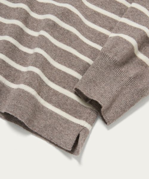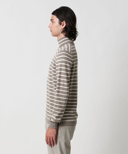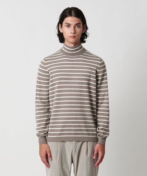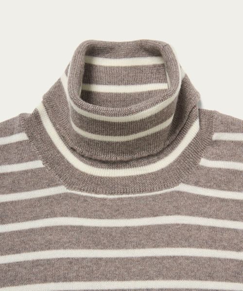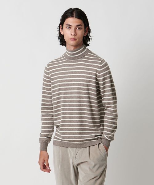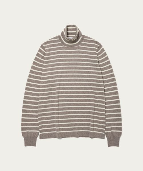大きすぎないピッチ幅のボーダーが上品な印象のタートルネックニット。