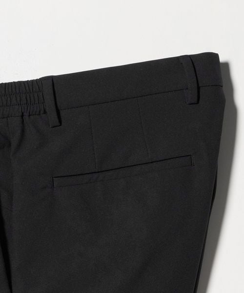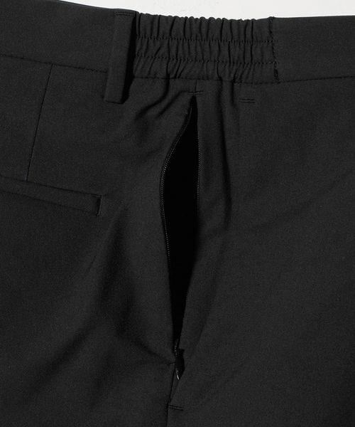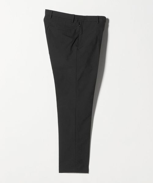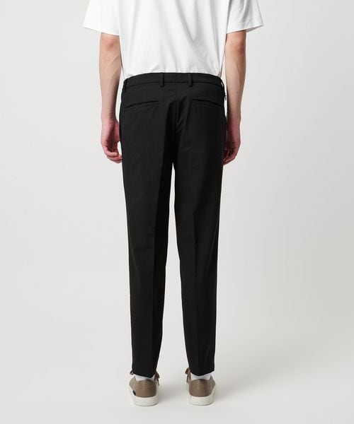 サイドシャーリングとストレッチ素材によって、快適なはき心地も実現するスリムスラックス。