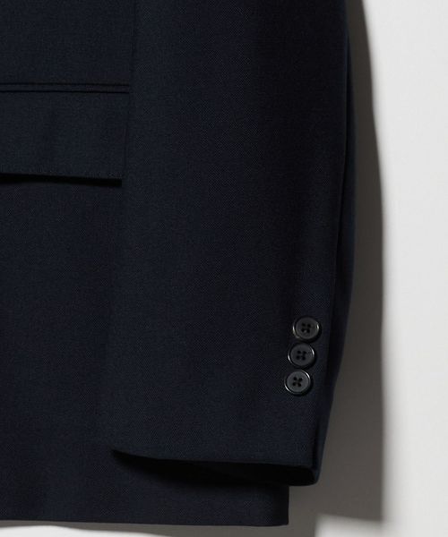 ノーネクタイでのニットやカットソーとのコーディネートを想定したセットアップモデル。