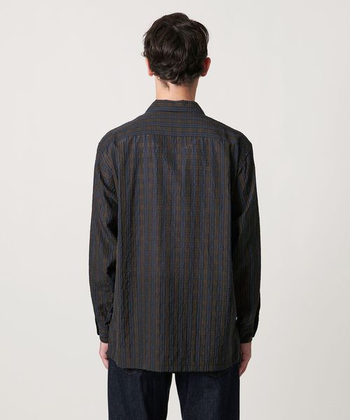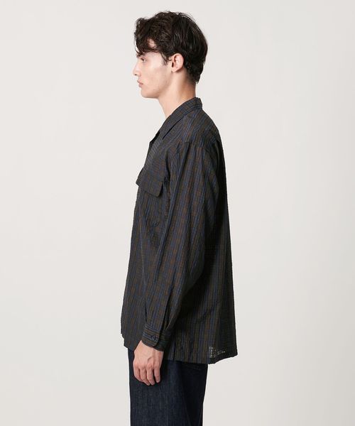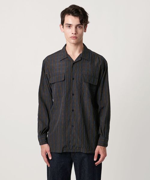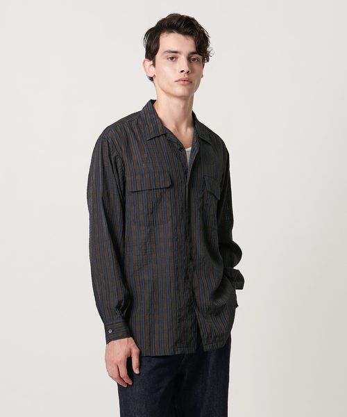 リラックスしたフィッティングとオープンカラーが特徴のシャツ。