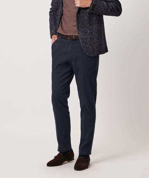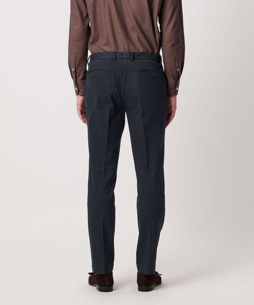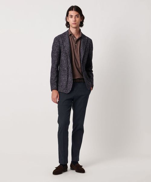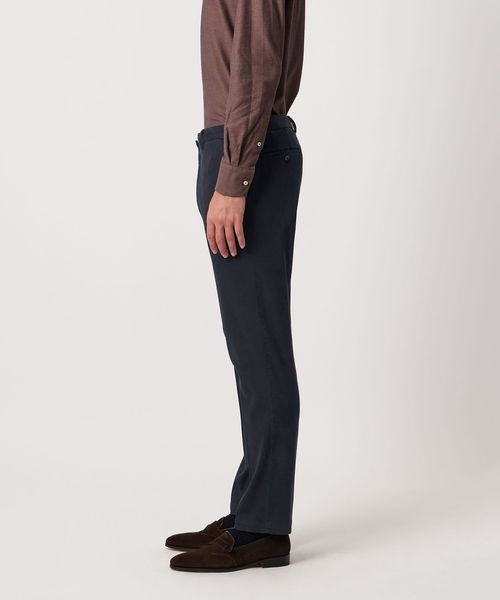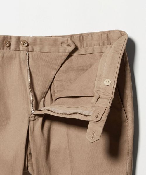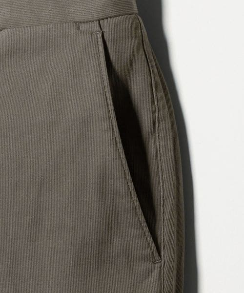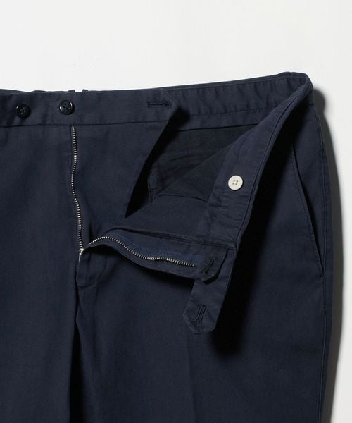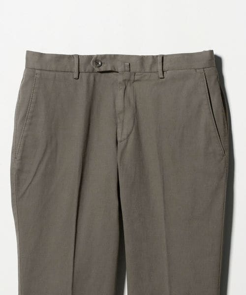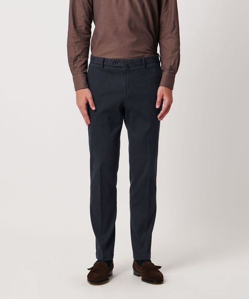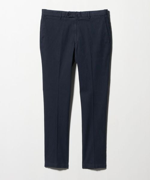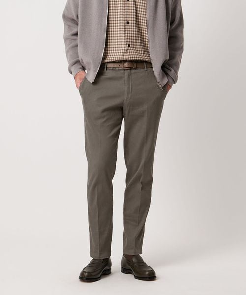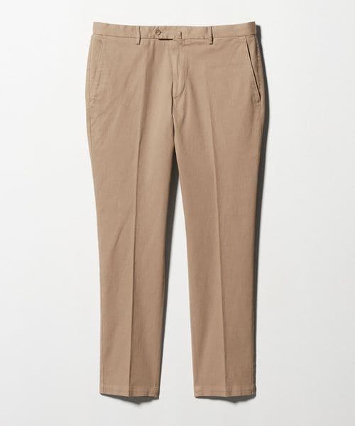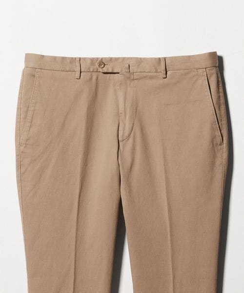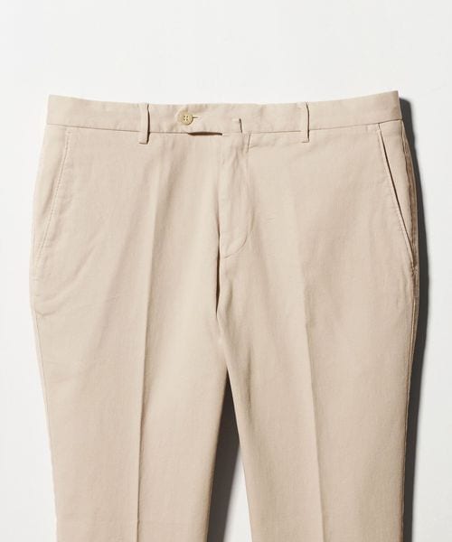 スラックス専門の工場で縫製し、すっきりとしたスリムなラインながら、脚を上げるときの運動量を加味した設計ゆえ、動きやすく快適なはき心地を実現しています。