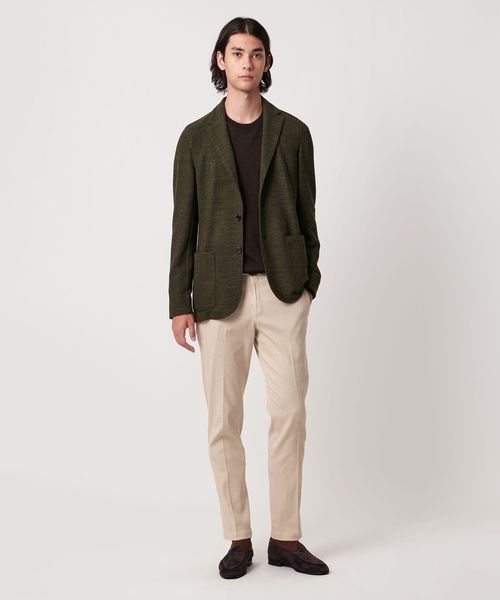 オンでは、ジャケットと組み合わせてきちんとした装いにも対応。