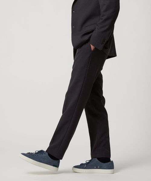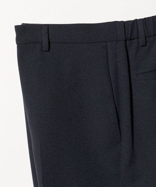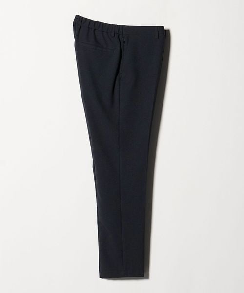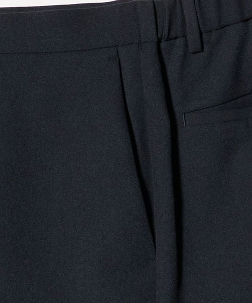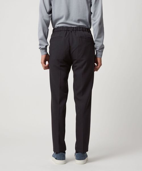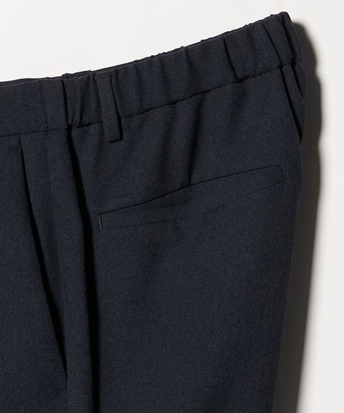素材のやわらかさと動きやすいパターン設計、またウエストのバックシャーリング(ゴム入り)仕様により、快適でイージーなはき心地とビジネスシーンにも相応しいスマートな佇まいを実現させています。