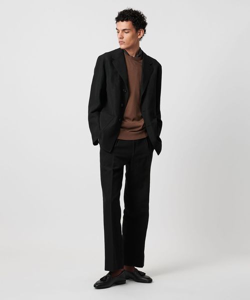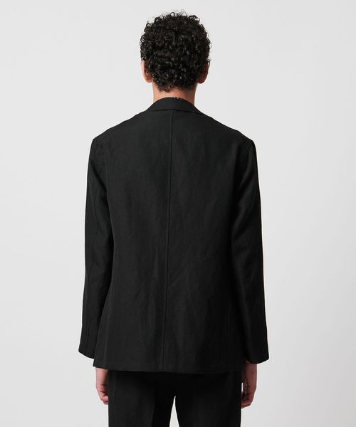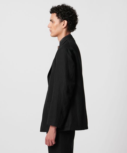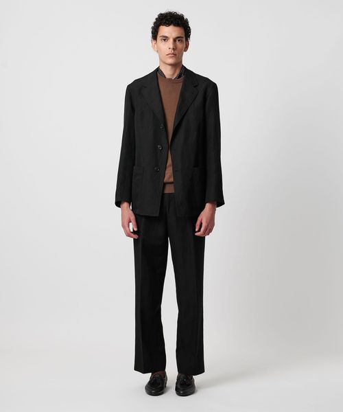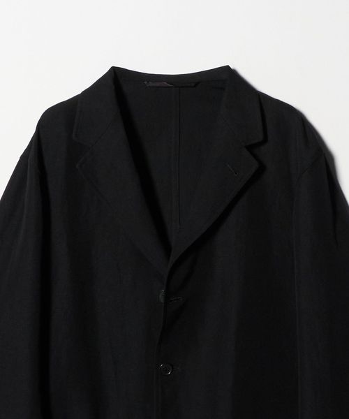衿付きのシングル3ボタンできちんと感がありながら、ゆったりとしたシルエットがリラックスした雰囲気です。