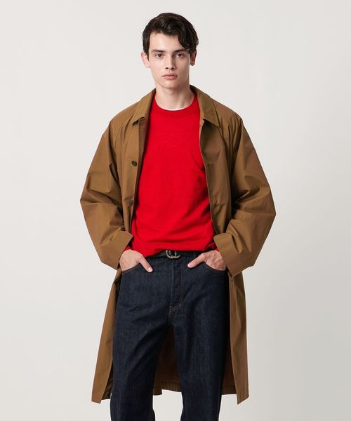 コートの色味に合わせてブラウン系のボトムスとの組み合わせはもちろん、角度によって変化する玉虫色に合わせて、赤やグリーンのインナーとのコーディネートが好相性です。