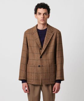 ブラウンのハウンドトゥースにウィンドウペンを重ねた、クラシカルで奥行きのある柄です。