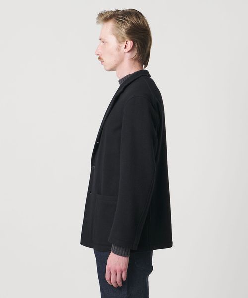 衿付きのシングル3ボタンできちんと感がありながら、ゆったりとしたシルエットがリラックスした雰囲気です。