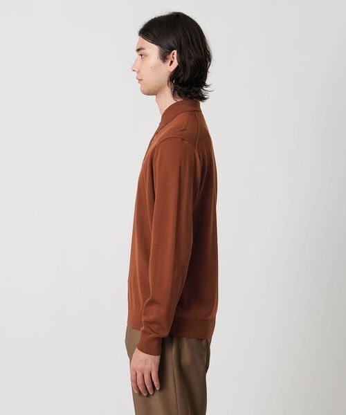 スタンダードなディティールのロングスリーブニットポロシャツ。