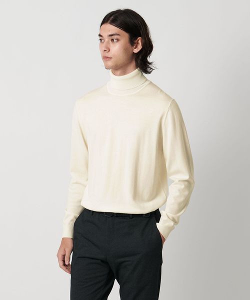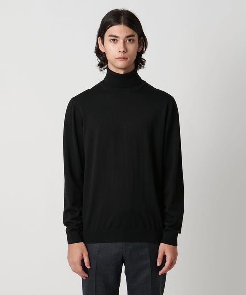 きめ細かいクリアな表情がトラディショナルかつ、上品な印象のハイゲージタートルネックニット。