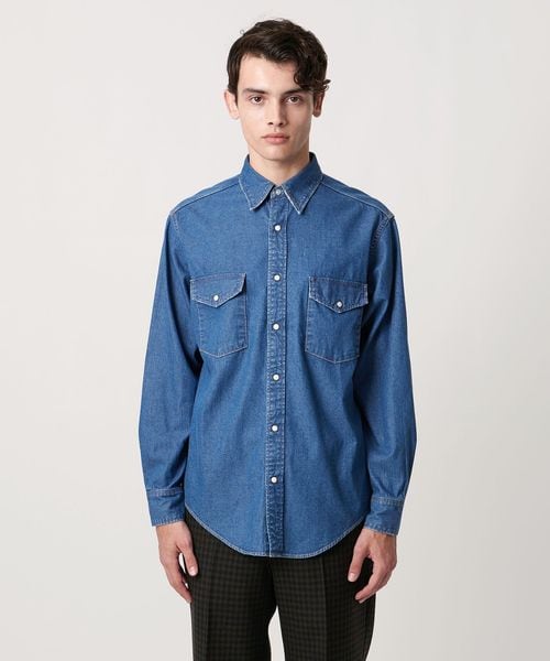 シオタ スビンコットン ダンガリー ウエスタンシャツ ハードウォッシュ 「SLOW & 」