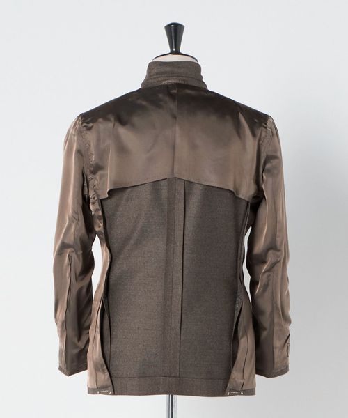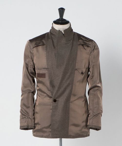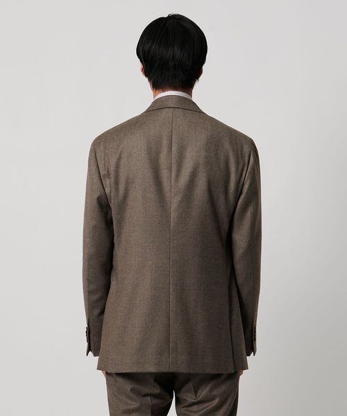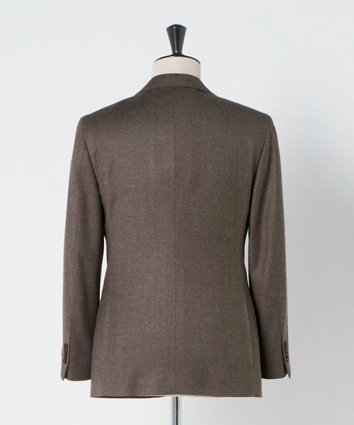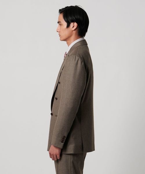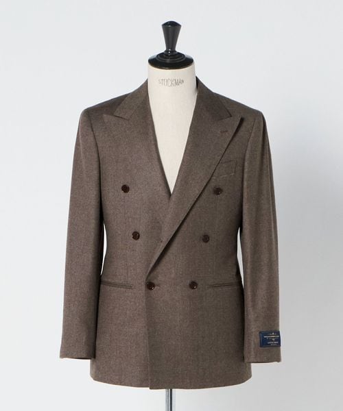 6ボタン下掛けのダブルジャケットは、広めの肩幅と長めの着丈、美しいウエストシェイプに加え、立体的な袖付け(マニカカミーチャ仕様)が特徴です。