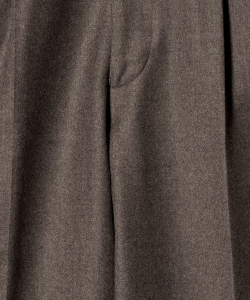 ボトムスは上着のシルエットに合わせた、やや深めの股上と、膝巾や裾巾を広げたストレート気味のラインです。