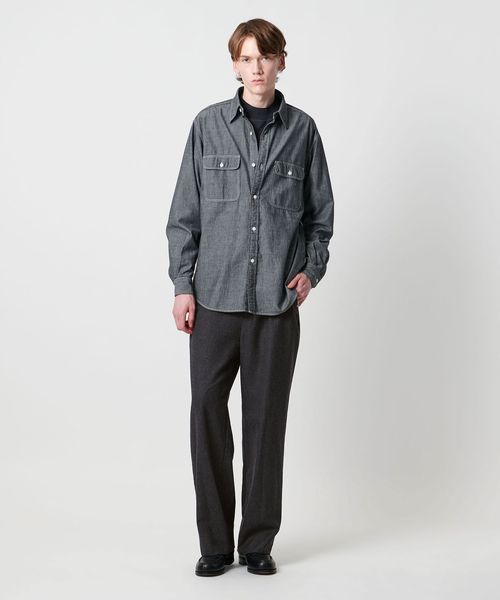 <District>ウールギャバジン ウォッシュド ワイドノープリーツパンツ
