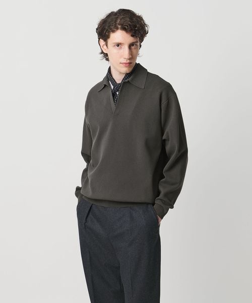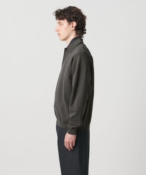 快適さとスタイルを両立するミラノリブ素材を使用したスキッパーニットポロ。