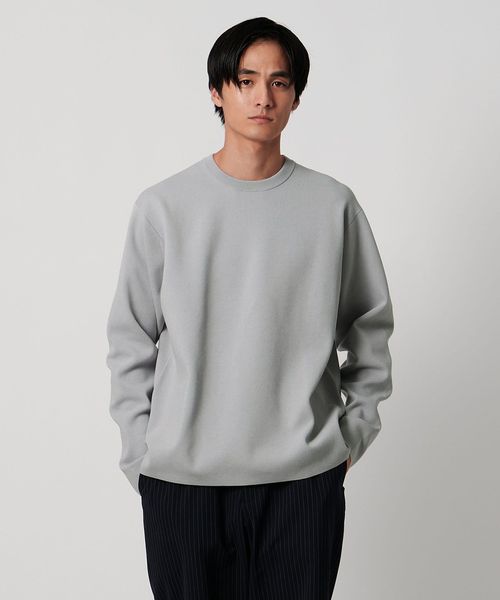 快適さとスタイルを両立するミラノリブ素材を使用したクルーネックニット。