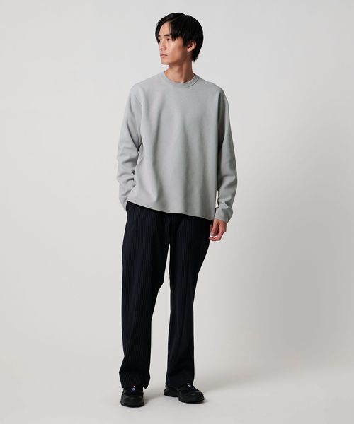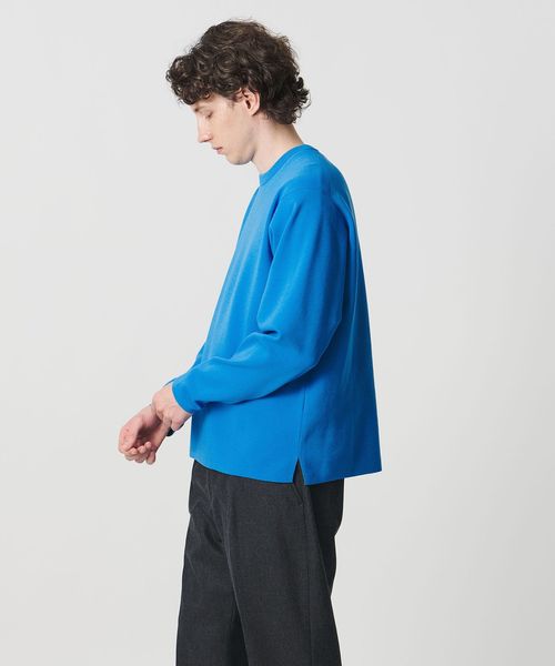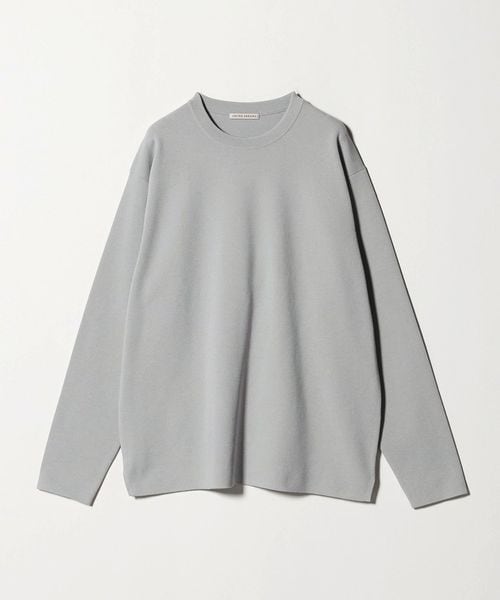 袖と裾はリブを付けずに編地で表現しており、Tシャツ感覚で着られる汎用性高い一品。